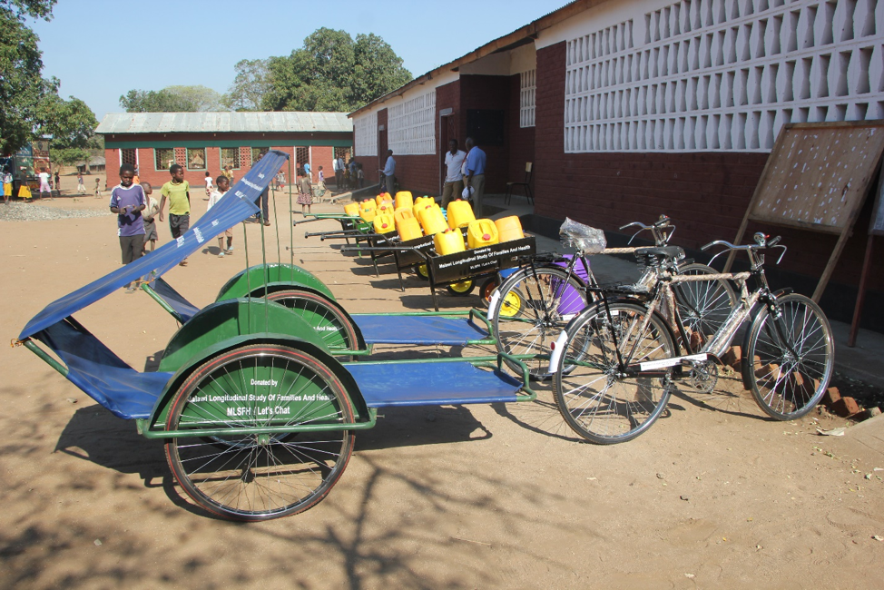 The following feedbacks from the communities is an example for the impact of the selected donations in the village communities in the MLSFH study areas: “We do not have a borehole for the school. Learners have to run to the village borehole during break time to drink water. Now, you can imagine 400 children crowding one borehole during a 15 minute break. The result is lengthy break and chaos at the borehole. The donations will alleviate this problem because we draw water and have it at the school,” male head teacher, Balaka. One health worker from a busy health center in Mchinji made a very touching revelation: “We used to have 2 thermometers at our facility. One was being used in the Out Patients Department and another in the Maternity Department. One thermometer later went missing and we started sharing the remaining one. Recently, the remaining one started malfunctioning. These donations are very timely and will go a long way in supporting this community.” A group village head in Balaka commented, “In our area, health centers are very far. We agreed that people should contribute so that each group should at least have one bicycle ambulance. However, people are failing to make enough contributions to buy a bicycle ambulance. These donations are a great relief to those group village heads that have received them.